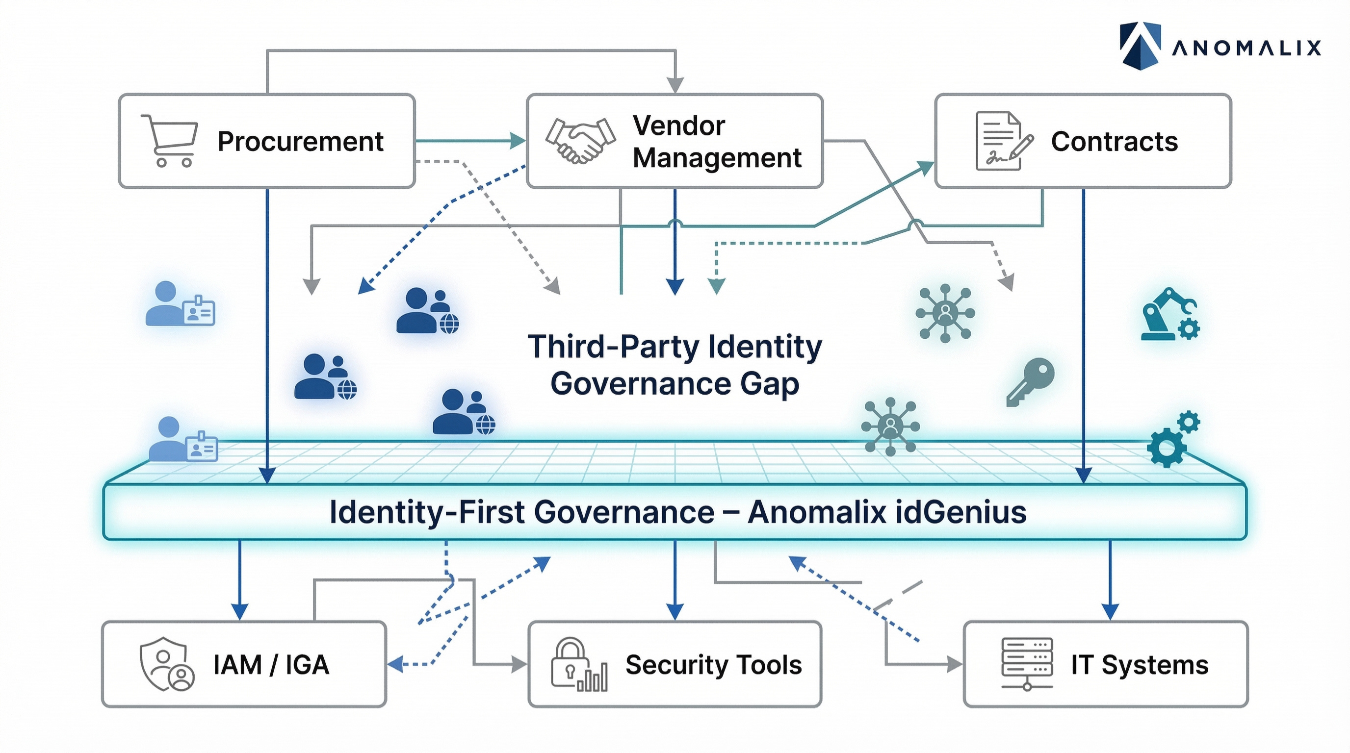 Through the idGenius platform, Anomalix helps organizations operationalize identity-first third-party risk management by providing: