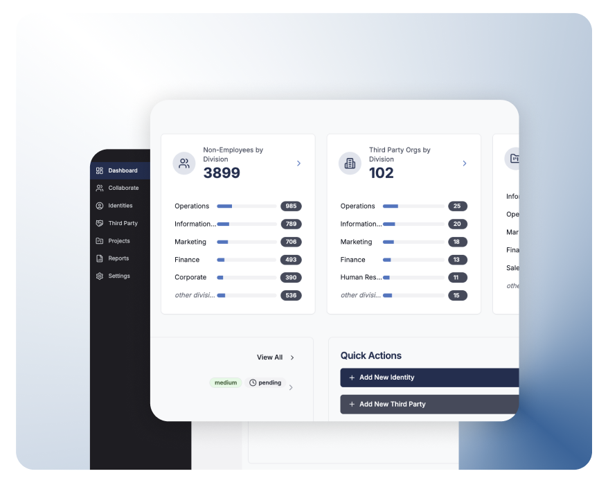 idGenius is purpose-built specifically to help business users manage third-party vendors and the identities they introduce. Instead of adding access controls to outdated workflows, idGenius is an enterprise platform that treats vendors as identity sources with their own lifecycle, governance needs, and risk profiles.